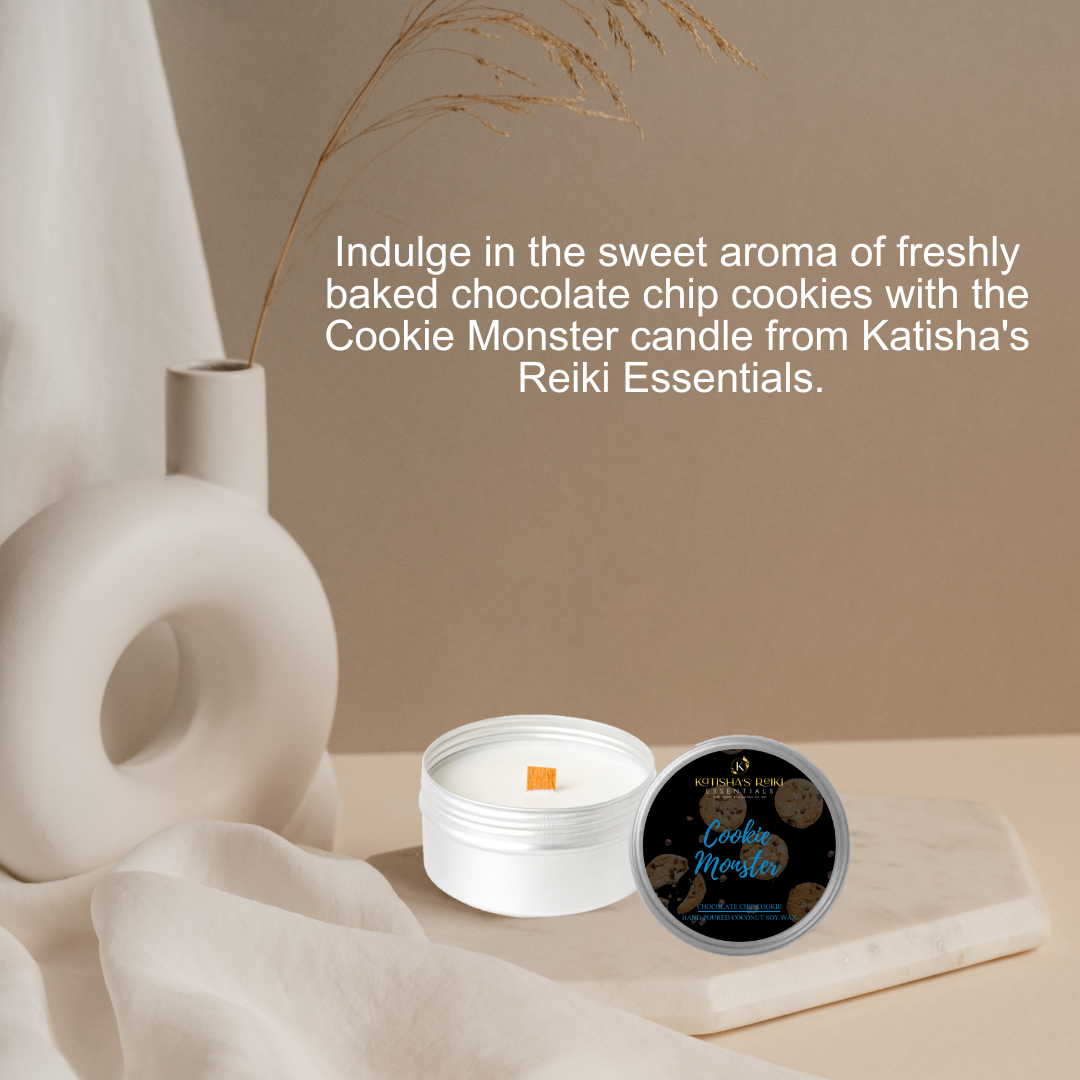 Indulge in the deliciously nostalgic aroma of fresh-baked chocolate chip cookies with the Cookie Monster Candle from Katisha's Reiki Essentials. Hand-poured with luxurious Coco Apricot Crème Soy Wax, this candle brings the mouthwatering scent of warm, gooey cookies straight from the oven into your home.